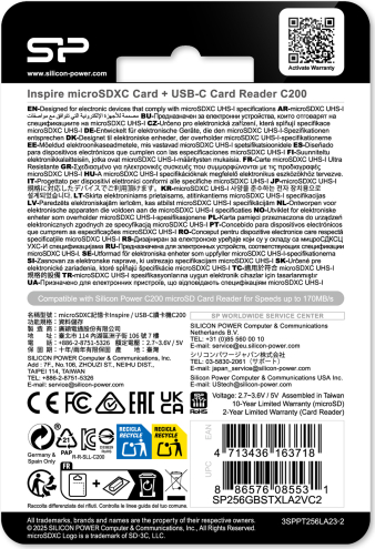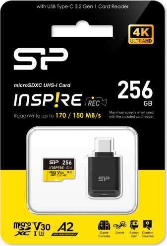 Silicon Power memory card microSDXC 256GB Inspire + card reader