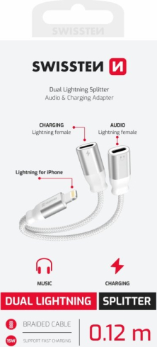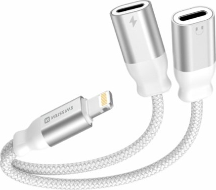 Swissten Textile Lightning Audio Charging Адаптер 2x Lightning 0.12m