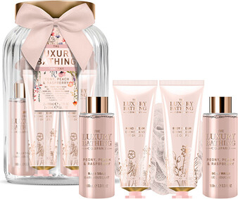 Uniquee Luxury Dárková sada ve skleněné dóze ( Pivoňka, Broskev & Malina )