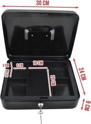 Iso Trade Kasetka sejf na pieniądze duża czarna metalowa na klucz uniwersalny