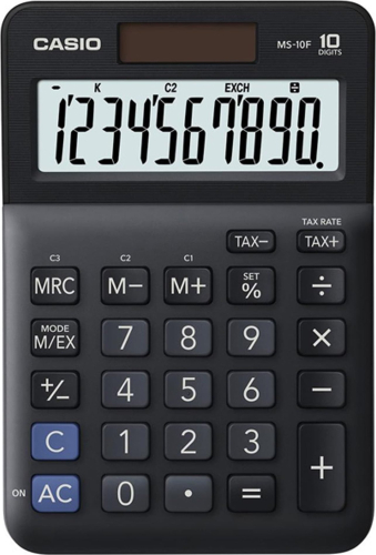 Kalkulator Casio Casio Kalkulator MS 10 F, czarna, stołowy, funkcja konwersji walut, %, VAT