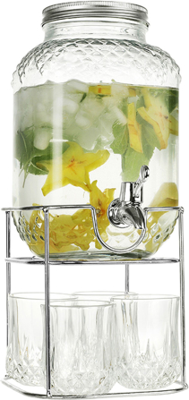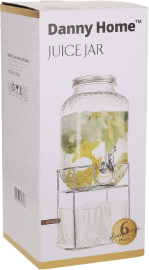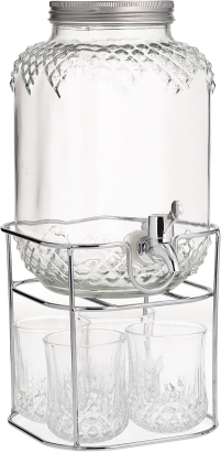Glass jar PARTY SET 4L with 4pcs glasses. Material: glass and iron stand.