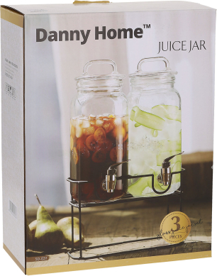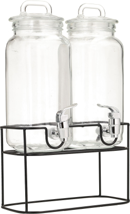 Glass jar TWIN 2x2,3L, with iron stand. Material: glass.