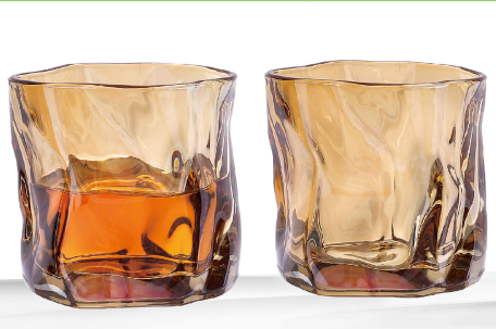 Uniquely shaped drinking glasses. Material: glass.