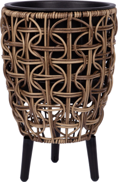 Planter WICKER 21 x 21 x H32 cm, brown. The metal frame of the flowerpot is covered with plastic wicker. Dimensions of the plastic inner pot: D18 x H17 cm. The inner pot is without a hole. Leg height 8 cm.
