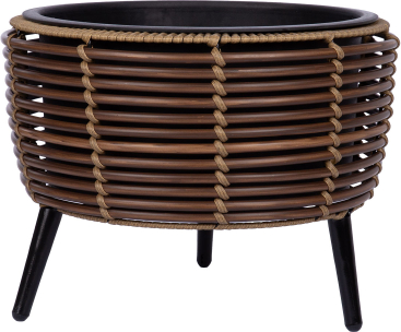 Planter WICKER 36 x 36 x H27 cm, brown. The metal frame of the flowerpot is covered with plastic wicker. Dimensions of the plastic inner pot: D29 x H15 cm. The inner pot is without a hole. Leg height 10 cm.