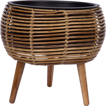 Planter WICKER 37 x 37 x H35 cm, light brown. The metal frame of the flowerpot is covered with plastic wicker. Dimensions of the plastic inner pot: D29 x H15 cm. The inner pot is without a hole. Leg height 15 cm.