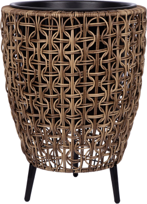 Planter WICKER 38 x 38 x H54 cm, brown. The metal frame of the flowerpot is covered with plastic wicker. Dimensions of the plastic inner pot: D30 x H32 cm. The inner pot is without a hole. Leg height 10 cm.