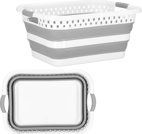 | Основные характеристики:Материал: пластик + силиконЦвет: серый/белыйНескользящий ручки Объем: 24 лФорма: овальнаяПрименение: универсальное Размеры: Общая ширина: 53 см.Общая длина: 38 см.Высота до раскладывания: 6 см.Высота после. в разложенном виде: 24 см.Размеры нижней части в разложенном виде: 36 x 24 см. |