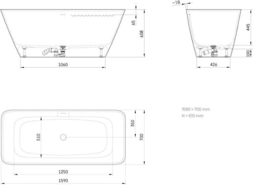 • Izmērs: 1590 x 700 mm, h = 610 mm