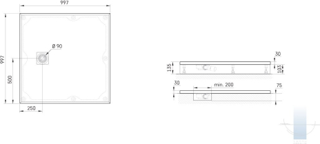 • Izmērs; 1000 x 1000 mm, h = 135 mm