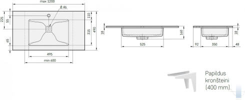 Izlietne īpaši šaurām telpām. Izgatavota no akmens masas – pamatīga un stabila materiāla ar klasiski spožu virsmu