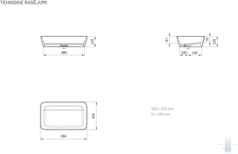 • Izmērs: 555 x 335 mm, augstums = 125 mm