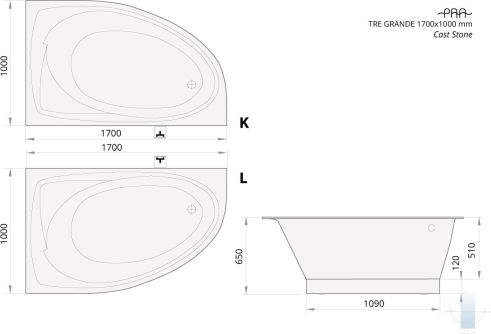 PAA Tre Grande Brīvi Stāvoša Akmens Masas Vanna