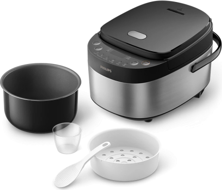 Philips Mini rice cooker HD3093/80 3000 series 600 W 0.85 L Number of programs 8 Black/Stainless Steel