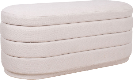 Bench with storage. The bench is covered with chenille fabric, 100% polyester. The frame is made of wood: MDF. The bench has high density foam padding. Weight limit: 90kg. Dimensions: 104x44xH44cm