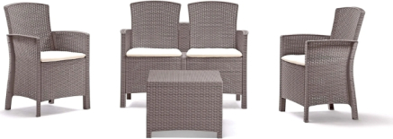 Комплект садовой мебели Lido с двухместным диваном, дополненный плетеным узором из ротанга, гарантирует комфортный, спокойный и расслабляющий отдых. Комплект садовой мебели Lido изготовлен из комбинации высококачественного перерабатываемого полипропилена и стекловолокна с использованием технологии литья под давлением, что придает ему большую прочность при ежедневном использовании и устойчивость к неблагоприятным погодным условиям. Идеальный комплект для использования в любом секторе: в частном - в помещении, на балконе, террасе или в саду, а также в профессиональном - в барах, кафе и многих других местах. Комплект садовой мебели Lido не только гарантирует превосходную долговечность, но и предлагает гостям большой комфорт благодаря большой поверхности для сидения и наклонной эргономичной спинке. Важным дополнительным преимуществом является то, что он собирается без металлических деталей, которые могут ржаветь со временем и на открытом воздухе. Изготовлен по специальной технологии, для сборки не требуются инструменты. Практичная и точная система, обеспечивающая значительную простоту сборки, не более 15 минут. Размеры дивана: высота 90 см, сиденье 44 см, ширина 112 см, глубина 56 см, вес 15 кг Общий вес нетто: 31 кг Размеры упаковки (картон): 120 x 60 x 57 см Общий вес с упаковкой: 33 кг