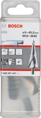 Bosch HSS step drill, 6mm - 40.5mm, M 10 - M 40 (16 steps, with spiral groove)