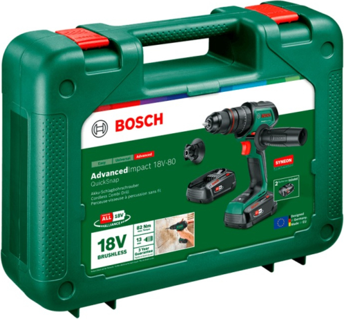 Bosch Powertools cordless impact drill AdvancedImpact 18V-80 QuickSnap (green/black, 2x Li-ion battery 2.5Ah, case, POWER FOR ALL ALLIANCE)