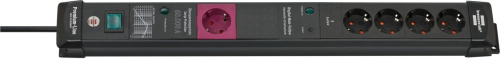 Brennenstuhl Premium Line 5-way power strip (black, 3 meters, 60,000A surge protection, 1 main and 4 follow sockets)