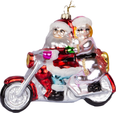 Christmas ornament JOY SANTA MOTORBIKE 13.4cm, glass
