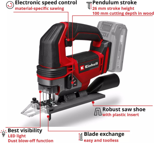 EINHELL Power X-Change cordless jigsaw TE-JS 18/100 Li - Solo, 18 Volt red/black, without battery and charger