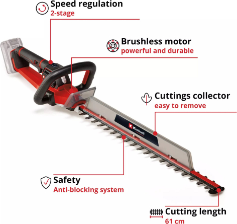 EINHELL Professional Cordless Hedge Trimmer GP-CH 18/61 Li BL-Solo, 18 Volt red/black, without battery and charger