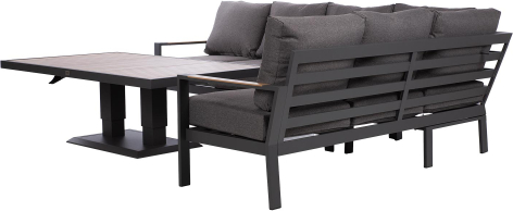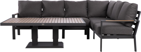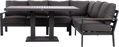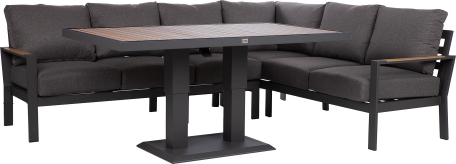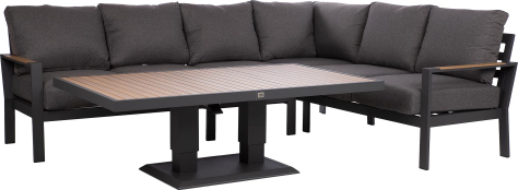 The set includes a height-adjustable table and a corner sofa.