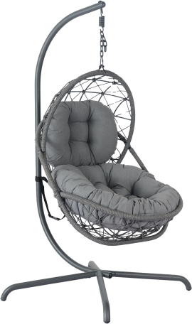 The leg of the hanging chair is made of steel and finished with a grey powder coating.