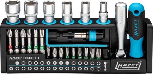 Hazet SmartHolder 2300SH-1, socket and bit set 1/4" black, 39 pieces, including fine-tooth reversible ratchet