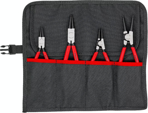 KNIPEX circlip pliers set O 12 - 60mm, 4-piece red, 4x straight tips, in roll-up bag