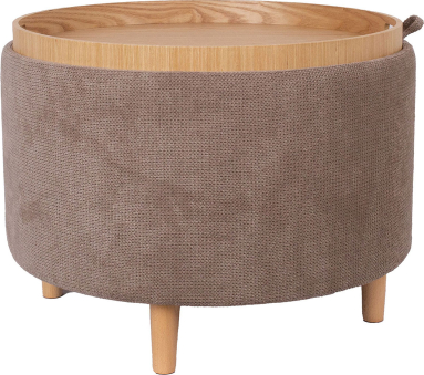 Ottoman/ table HIRO D56xH42,5cm, light brown, with storage and tray