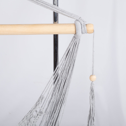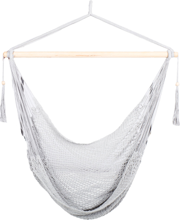 The hanging chair can be hung on a strong tree branch or beam. It is also possible to use a special stand to hang the swing up.