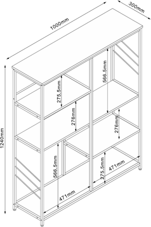 Shelf DIMITRA 100x30xH124cm, grey. Material: painted particle board. The shelf frame is made of metal and finished with powder coating.