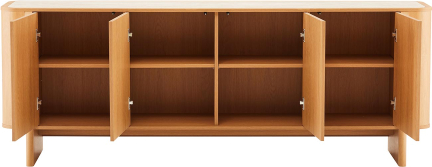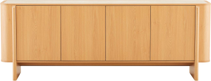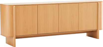 | Sideboard MORBEN with 4 doors 202.5 x 42 x H75 cm, melamine with oak decor.