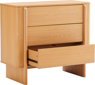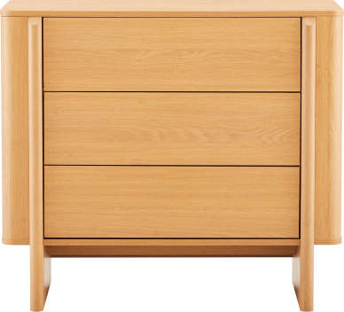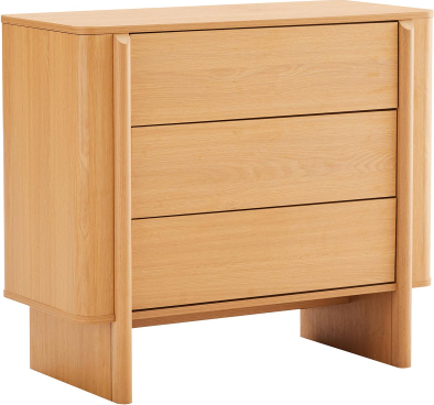 | Sideboard MORBEN with 3 drawers 90 x 42 x H80 cm, melamine with oak decor.