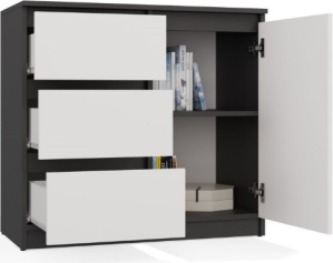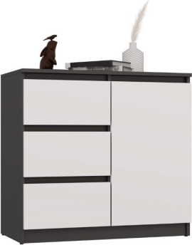 Top E Shop CHEST OF DRAWERS 1 DOOR 3 DRAWERS ANTHRACITE/WHITE