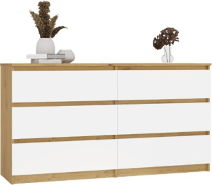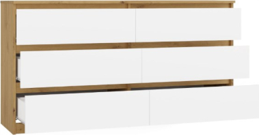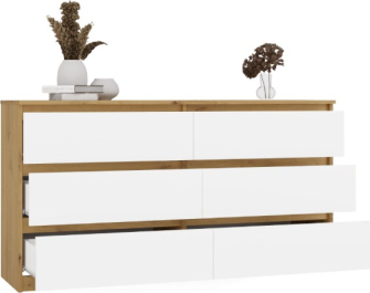 Top E Shop M6 MALWA CHEST OF DRAWERS 140 CM 6 DRAWERS OAK ARTISAN/WHITE