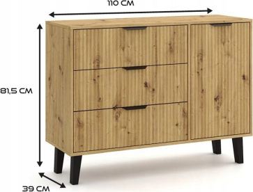 Top E Shop SCANDI 1D3S SLIM OAK ARTISAN CHEST OF DRAWERS