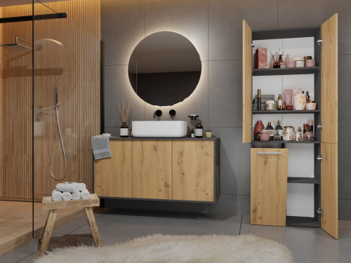 Top E Shop Topeshop NEL 1K DD ANT/ART KP bathroom storage cabinet Graphite, Oak
