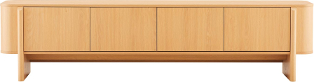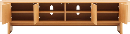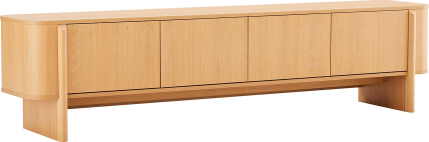 | TV unit MORBEN with 4 doors 202.5 x 42 x H50 cm, melamine with oak decor.