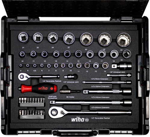 Wiha socket wrench and bit set 1/4 and 1/2, 60 pieces (with 2 ratchets and plug-in handle, in L-BOXX)