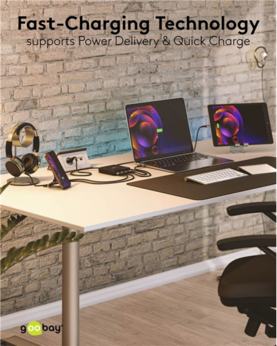 goobay USB-C multiport desktop charger, PD, GaN, 100 watts, black, 2x USB-C, 2x USB-A, Power Delivery, QuickCharge 3.0