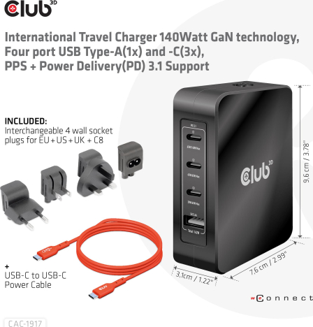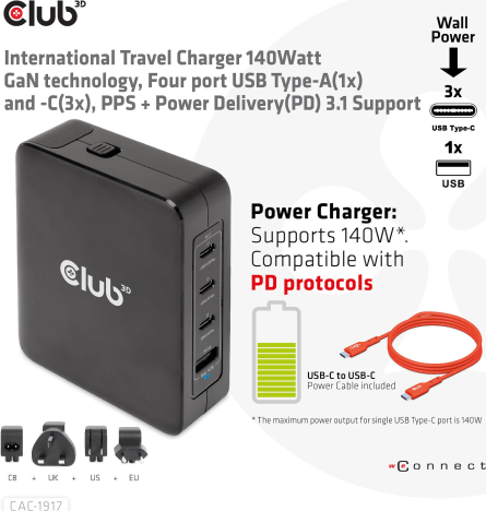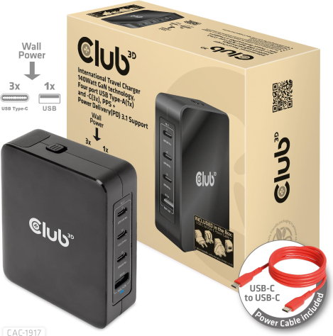 MOBILE TRAVEL CHARGER USB-C/140W GAN CAC-1917 CLUB3D