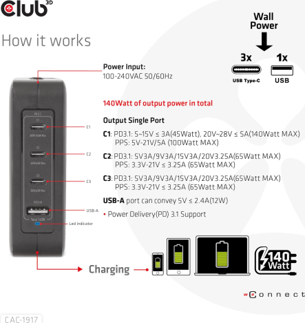 - Internal chip allows an input voltage of 100-240VAC 50/60Hz Manufacturer Website: https://www.club-3d.com/shop/cac-1917-1246#attr=2790,1743,1744,1745,1796,1951,1746 | ||||||||||||||||||||||||||||||||||||||||||||||||||||||||||||||||||||||||||||||||