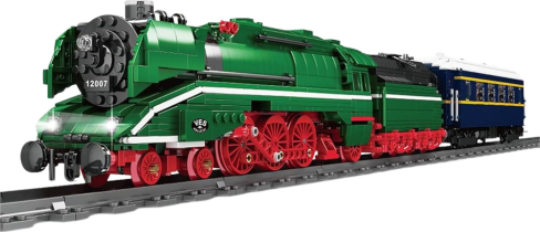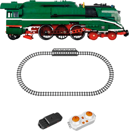 RC STEAM LOCOMOTIVE – 2348-PIECE SET WITH REMOTE CONTROL AND TRACK This impressive construction set is perfect for railway fans and ambitious building enthusiasts. With 2348 pieces, you can create a realistic, massive model of a steam locomotive with a passenger car, track set, and full remote control functionality. This is not just a model for display, but a fully functional machine that can be controlled with a remote control! The set impresses not only with its size but also with its attention to detail – the huge red wheels, sleek locomotive shape, and contrasting colors create a striking and stylish look. The locomotive is equipped with an electric drive with a battery, allowing it to move smoothly forward and backward along the track. The included remote control provides full control over the model's movement. This set offers not only great fun but also develops technical skills, logical thinking, and manual precision. It's perfect both as a toy and as a unique collector's gift. The entire set is packaged in a large, aesthetically pleasing box that highlights the product's unique character. SPECIFICATIONS: