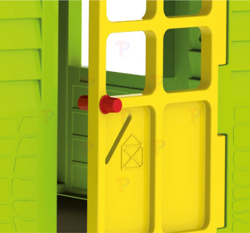 • Пластиковый домик имеет окна и двери ярких тонов.
