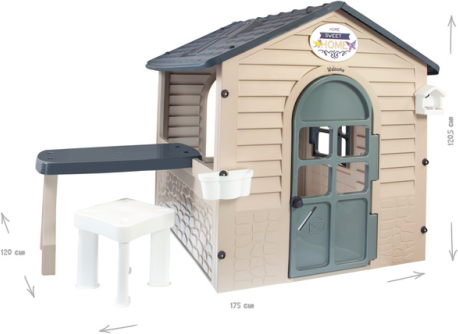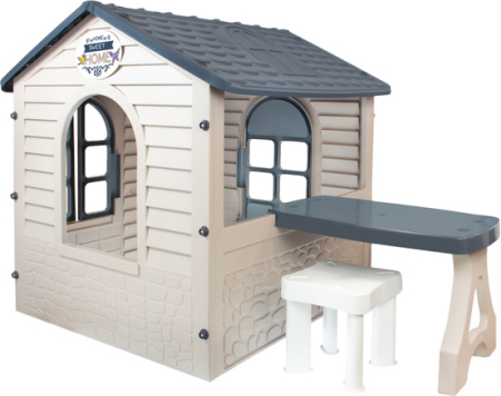 Он был создан набирающей популярность компанией Mochtoys. Дом подходит для детей в возрасте от 12 месяцев. Cтены украшены красочными наклейками с изображением попугаев, бабочек и цветка. Домик оборудован навесом для защиты от солнца и дождя, открывающимися дверями и ставнями, а также в нем есть стол и стул, почтовый ящик и цветочный горшок и кормушка для птиц.
