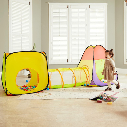 Bērnu telts ar ekskluzīvo dizainu liks jūsu bērniem justies kā neparastā piknikā maģiskā noslēpumu mežā. Pat divas koši krāsainas teltis, kas savienotas ar tuneli, noteikti rosinās bērnu iztēli un kļūs par viņu iecienītāko rotaļu vietu. Šī telts ir ideāli piemērota gan iekštelpām, gan āra rotaļām. Ļoti viegli saliekama un salocīta aizņem maz vietas.