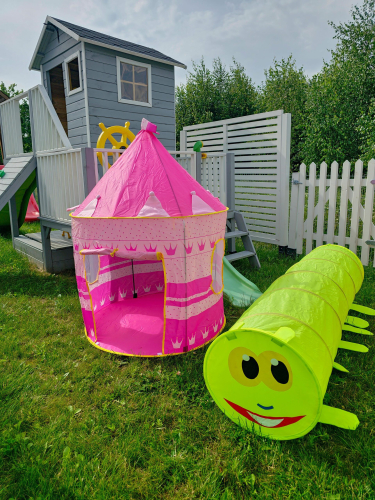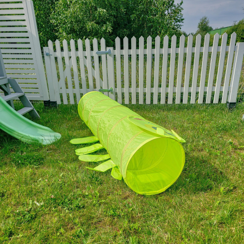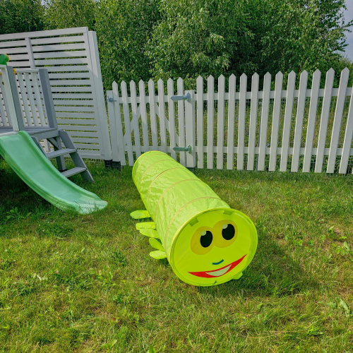 Rotaļīgais un krāsainais rotaļu tunelis ļaus bērniem aktīvi pavadīt laiku gan mājās, gan dārzā. Rotaļu tunelis palīdzēs attīstīt bērnu radošumu un iztēli. Tas ir ne tikai viegls, bet arī viegli salokāms, tāpēc to var transportēt uz vēlamo vietu. Pārdomātas detaļas - smaidīga sejiņa, mazas kājiņas - iepriecinās katru.